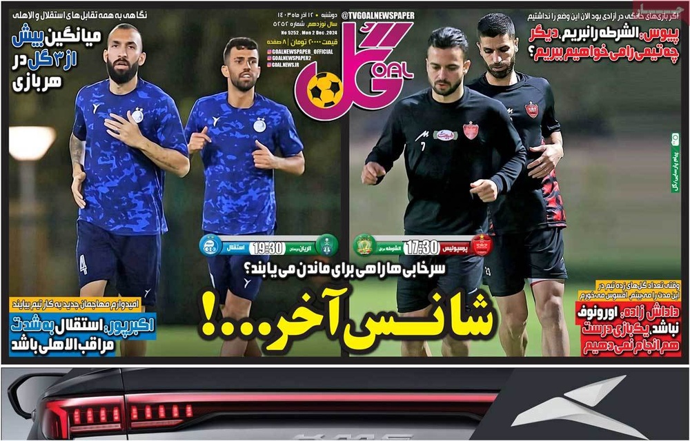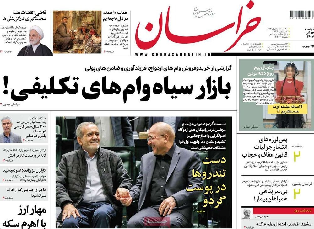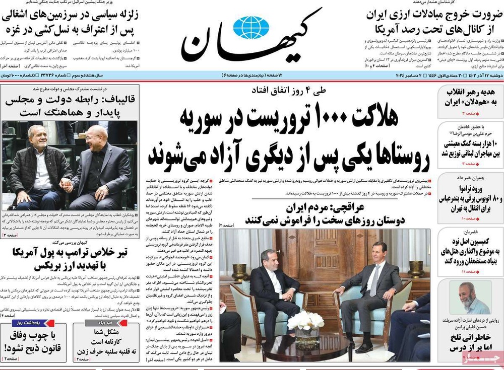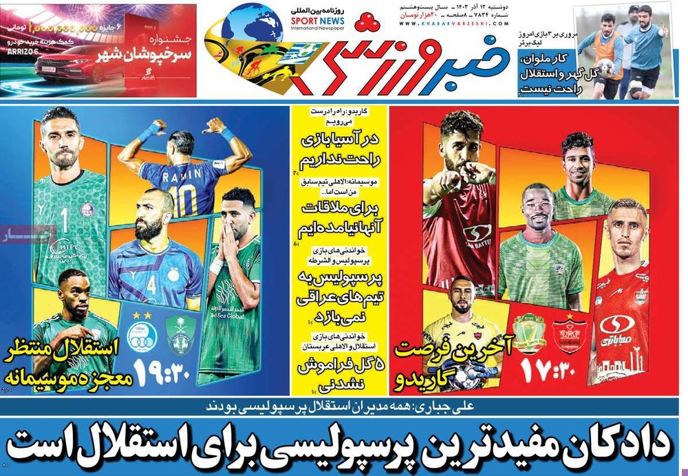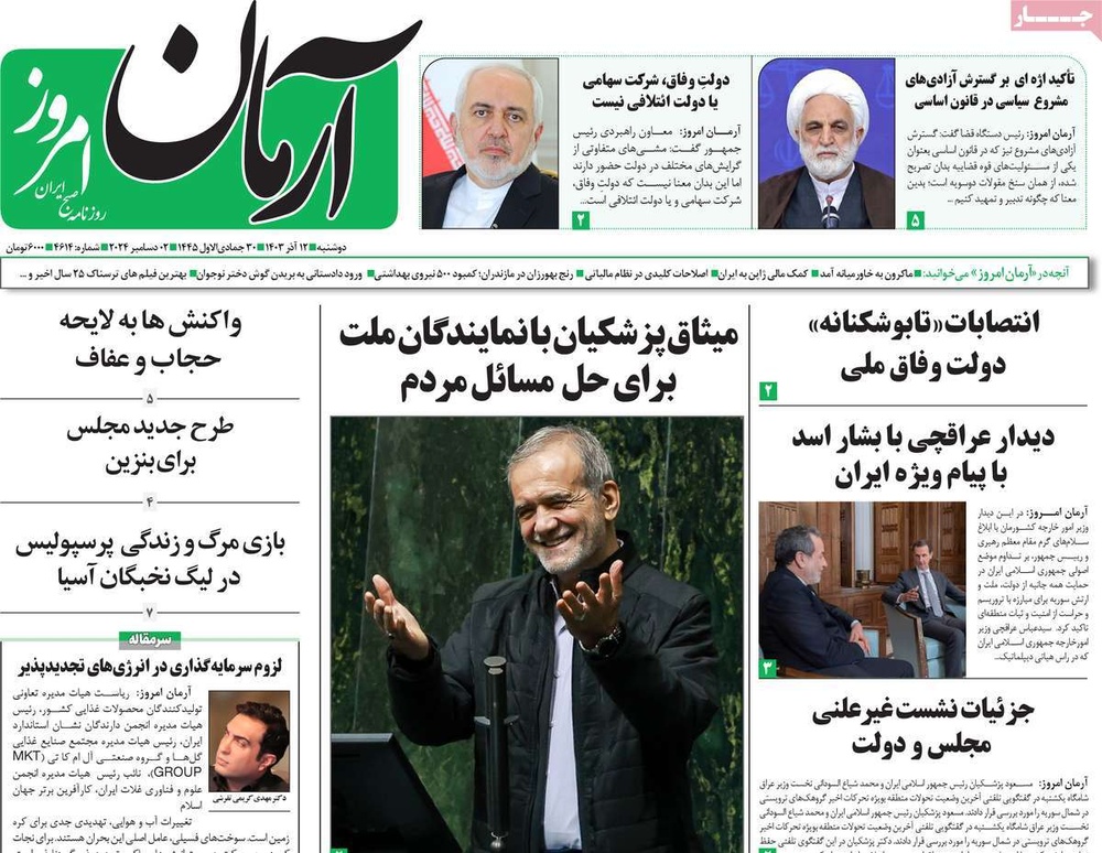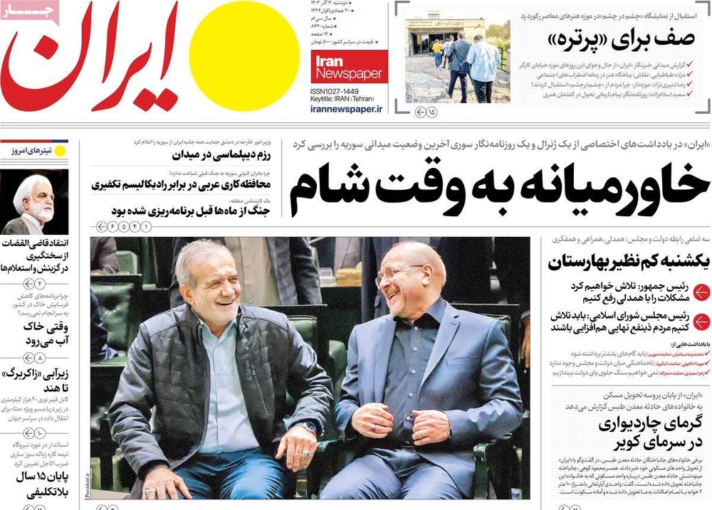 مطبوعات ۱۲ آذر ۱۴۰۳ - ۰۷:۴۹ کد مطلب: 135703 دریافت تصاویر صفحه اول روزنامههای دوشنبه ۱۲ آذرماه ۱۴۰۳ برچسبها مطبوعات