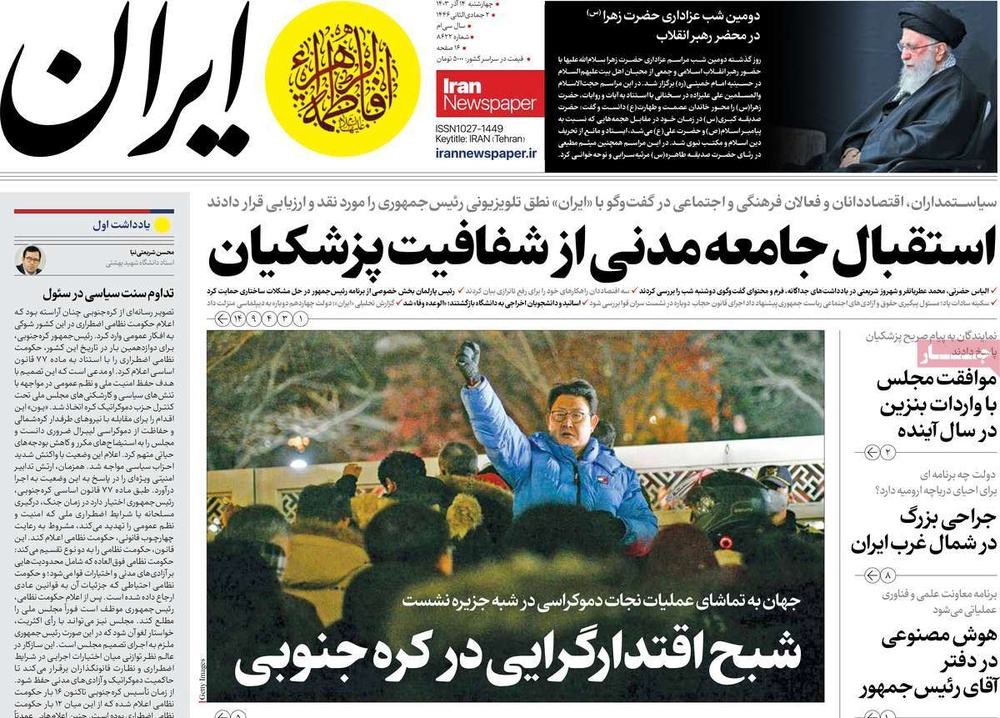 مطبوعات ۱۴ آذر ۱۴۰۳ - ۰۸:۴۳ کد مطلب: 135784 دریافت تصاویر صفحه اول روزنامههای چهارشنبه ۱۴ آذرماه ۱۴۰۳ برچسبها مطبوعات