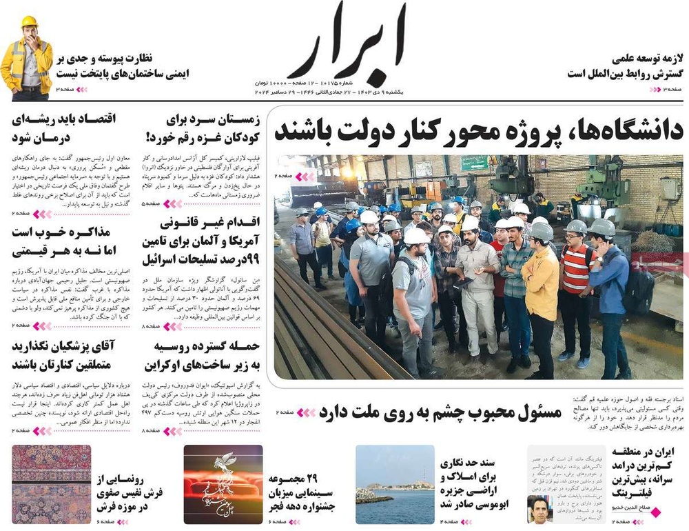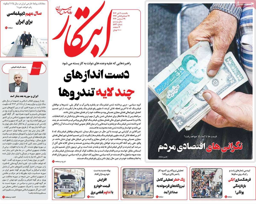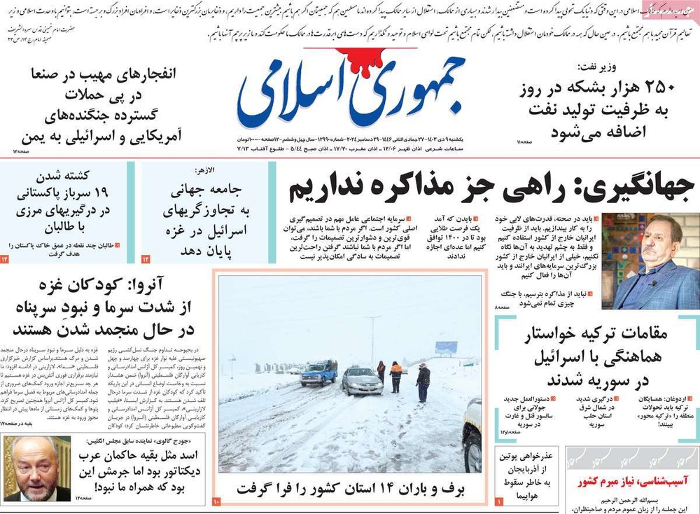 مطبوعات ۹ دی ۱۴۰۳ - ۰۸:۴۸ کد مطلب: 136441 دریافت تصاویر صفحه اول روزنامههای یکشنبه ۹ دیماه ۱۴۰۳ برچسبها مطبوعات