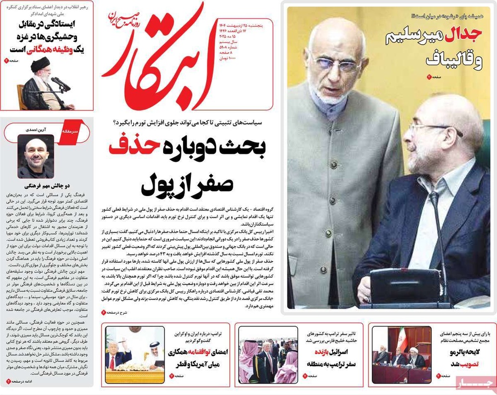 مطبوعات ۲۵ اردیبهشت ۱۴۰۴ - ۱۱:۰۴ کد مطلب: 139032 دریافت تصاویر صفحه اول روزنامههای پنجشنبه ۲۵ اردیبهشتماه ۱۴۰۴ برچسبها مطبوعات