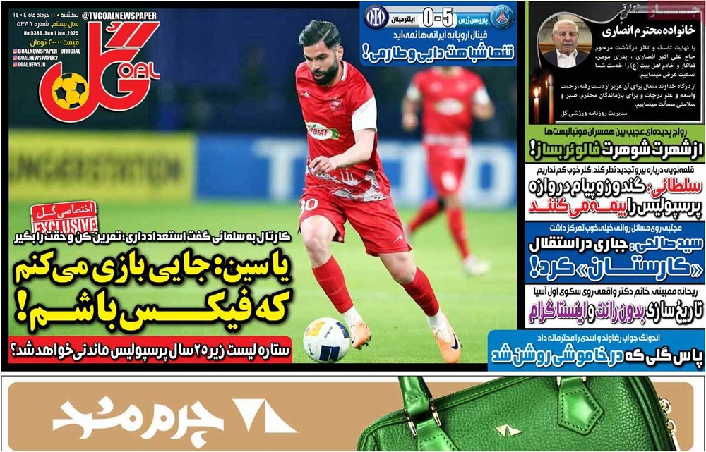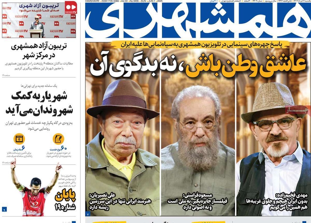 مطبوعات ۱۱ خرداد ۱۴۰۴ - ۰۷:۱۷ کد مطلب: 139457 دریافت تصاویر صفحه اول روزنامههای یکشنبه ۱۱ خردادماه ۱۴۰۴ برچسبها مطبوعات