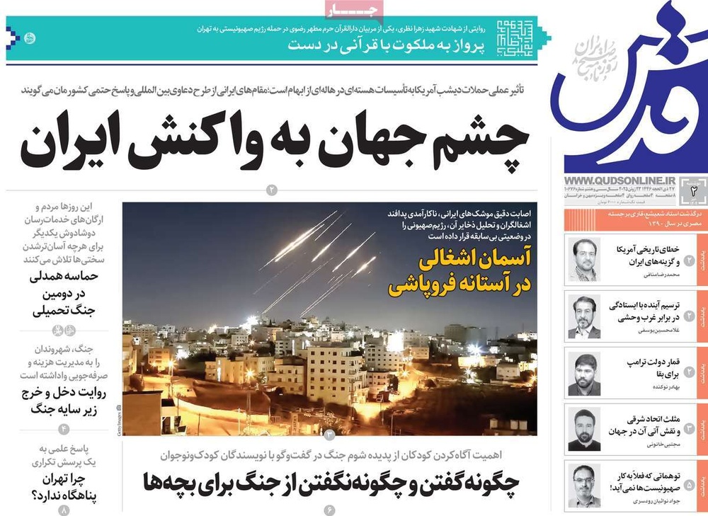 مطبوعات ۲ تیر ۱۴۰۴ - ۰۸:۴۳ کد مطلب: 139800 صفحه اول روزنامههای دوشنبه ۲ تیرماه ۱۴۰۴ برچسبها مطبوعات