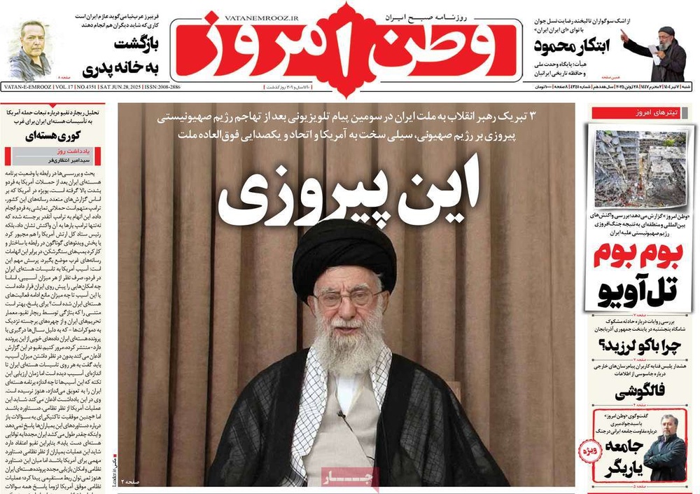 مطبوعات ۷ تیر ۱۴۰۴ - ۰۸:۰۸ کد مطلب: 139864 دریافت تصاویر صفحه اول روزنامههای شنبه ۷ تیرماه ۱۴۰۴ برچسبها مطبوعات