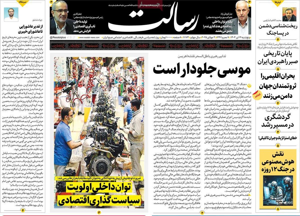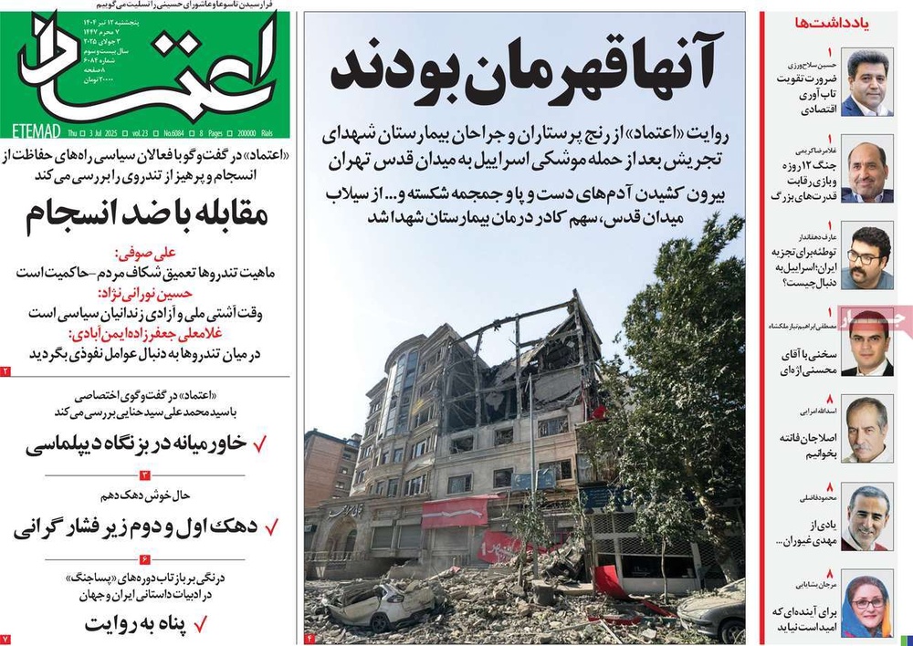 مطبوعات ۱۲ تیر ۱۴۰۴ - ۱۰:۱۴ کد مطلب: 140006 دریافت تصاویر صفحه اول روزنامههای پنجشنبه ۱۲ تیرماه ۱۴۰۴ برچسبها مطبوعات