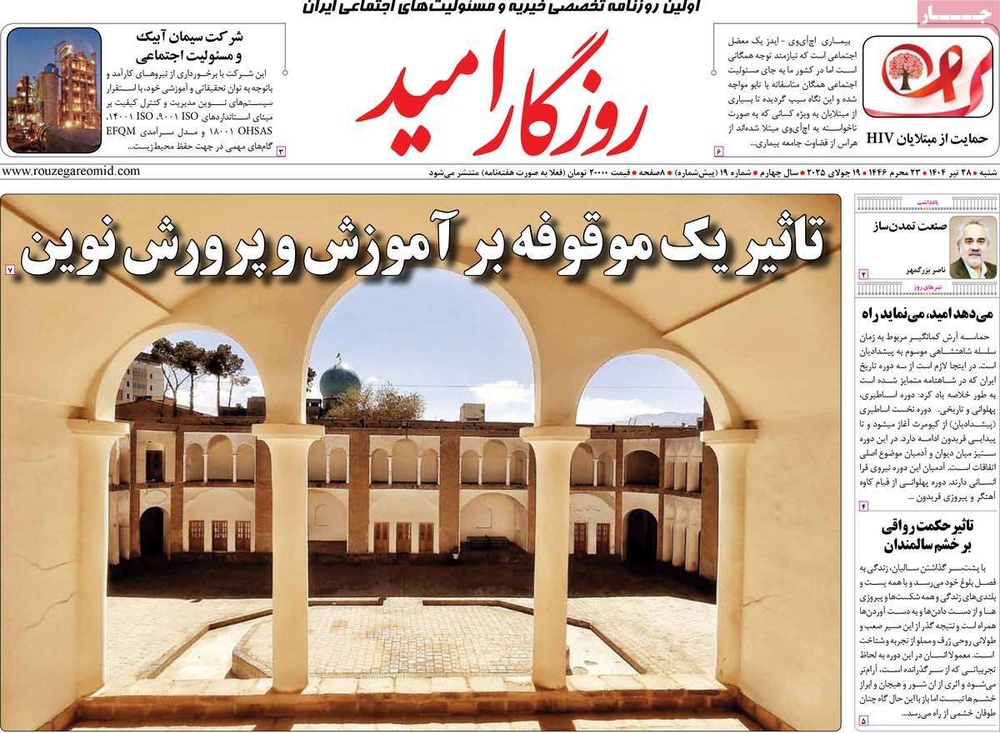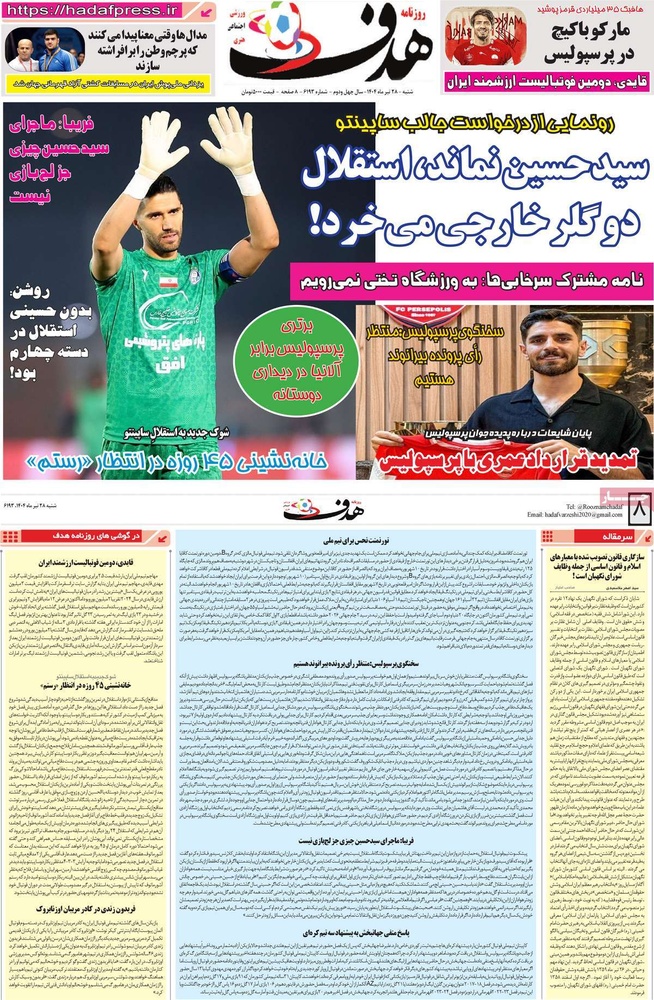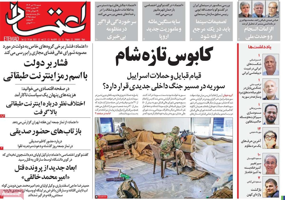 مطبوعات ۲۸ تیر ۱۴۰۴ - ۰۶:۲۵ کد مطلب: 140281 دریافت تصاویر صفحه اول روزنامههای شنبه ۲۸ تیرماه ۱۴۰۴ برچسبها مطبوعات