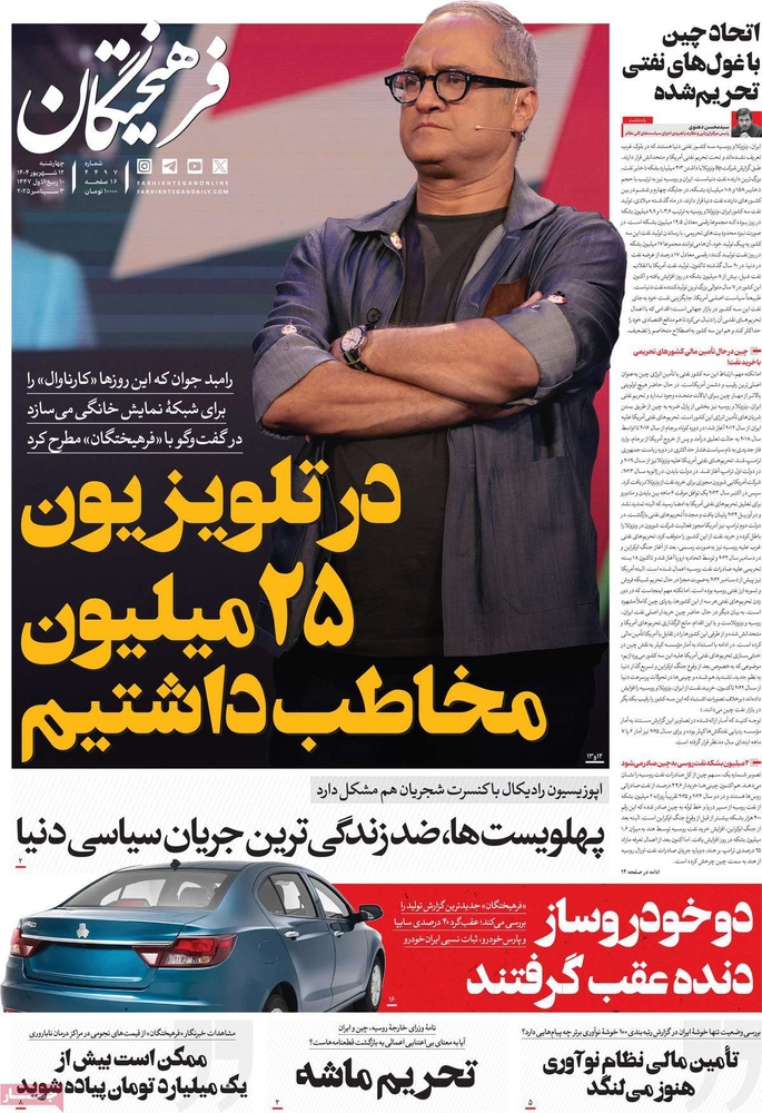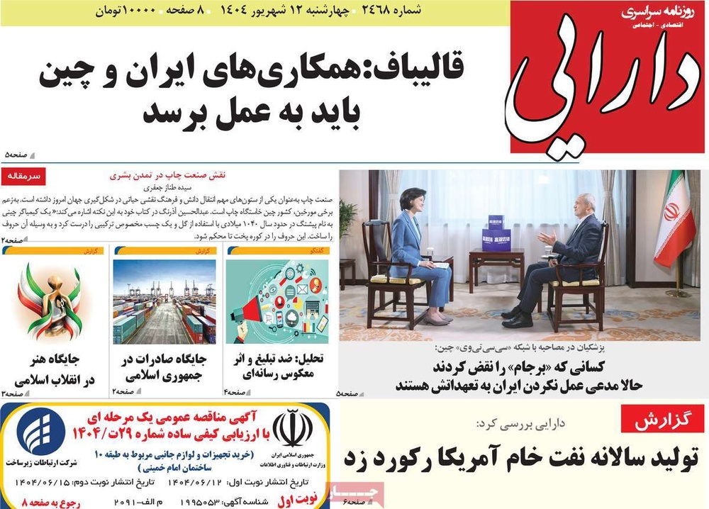 مطبوعات ۱۲ شهریور ۱۴۰۴ - ۰۸:۳۳ کد مطلب: 140904 دریافت تصاویر صفحه اول روزنامههای چهارشنبه ۱۲ شهریورماه ۱۴۰۴ برچسبها مطبوعات