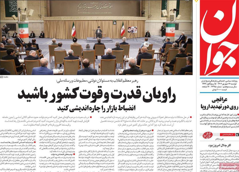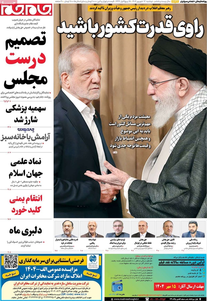 مطبوعات ۱۷ شهریور ۱۴۰۴ - ۰۷:۳۵ کد مطلب: 140982 دریافت تصاویر صفحه اول روزنامههای دوشنبه ۱۷ شهریورماه ۱۴۰۴ برچسبها مطبوعات