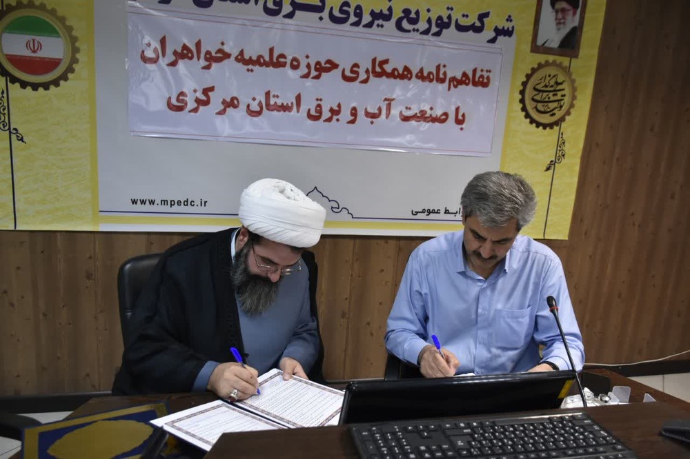حجت الاسلام والمسلمین درگاهی مدیر حوزههای علمیه خواهران و جناب آقای مهندس محمودی رئیس صنعت آب و برق استان مرکزی در جلسهای مشترک تفاهم نامهای را منعقد کردند و مقرر شد از ظرفیتهای مبلغین و خواهران طلبه جهت بهینه سازی الگوی مصرف آب و برق استفاده شود.