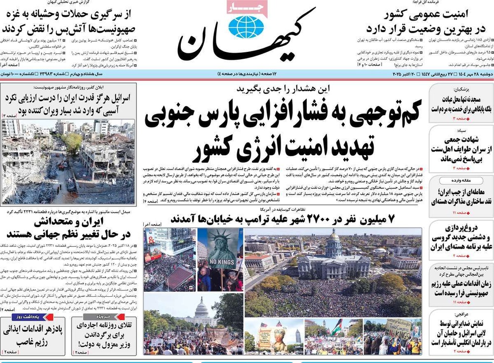 مطبوعات ۲۸ مهر ۱۴۰۴ - ۰۹:۰۱ کد مطلب: 142037 دریافت تصاویر صفحه اول روزنامههای دوشنبه ۲۸ مهرماه ۱۴۰۴ برچسبها مطبوعات