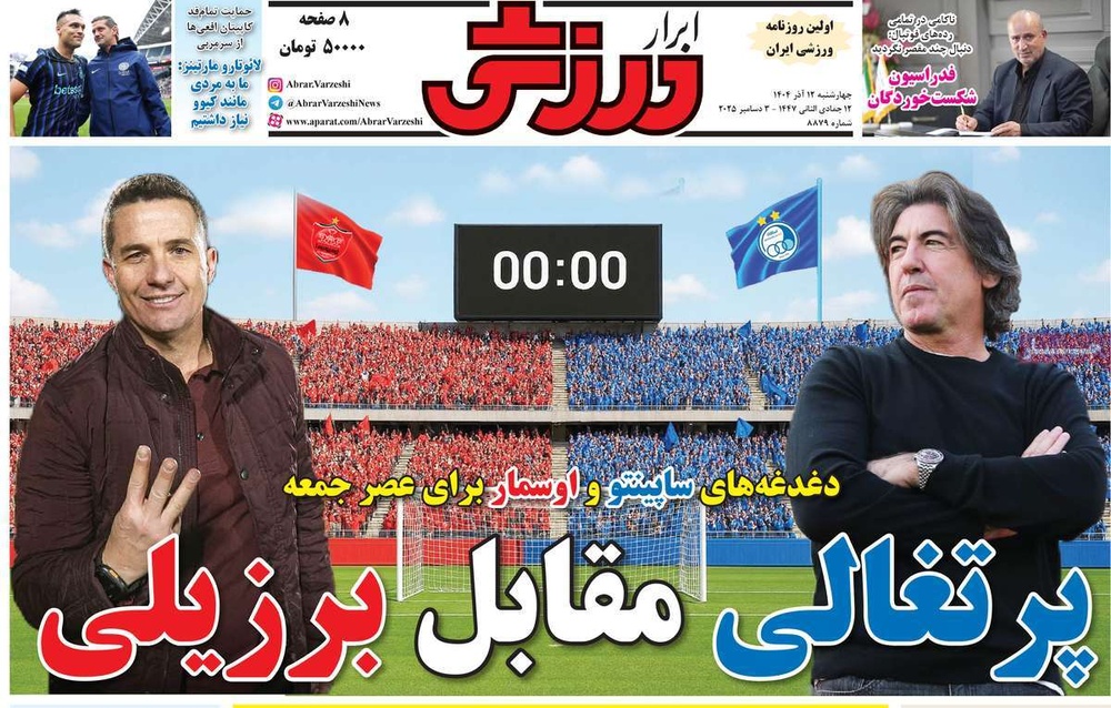 مطبوعات ۱۲ آذر ۱۴۰۴ - ۰۷:۴۰ کد مطلب: 143247 دریافت تصاویر صفحه اول روزنامههای چهارشنبه ۱۲ آذرماه ۱۴۰۴ برچسبها مطبوعات